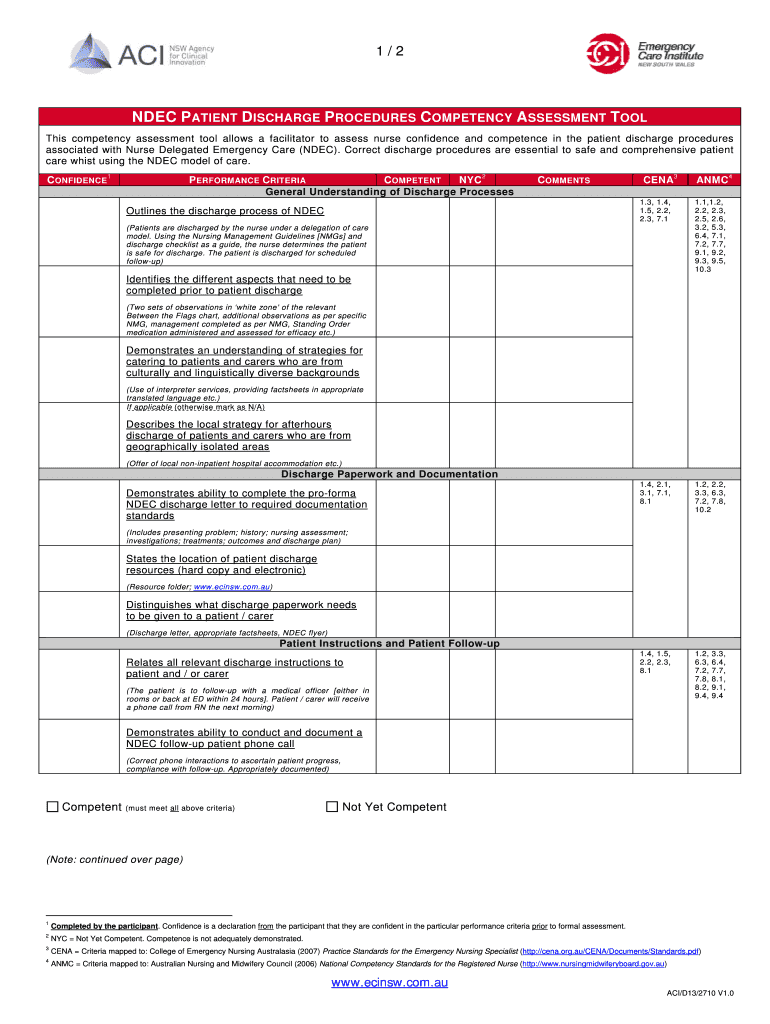 Ndecdischargeprocedures Competency Assessment Tool is not the form you're looking for?Search for another form here.