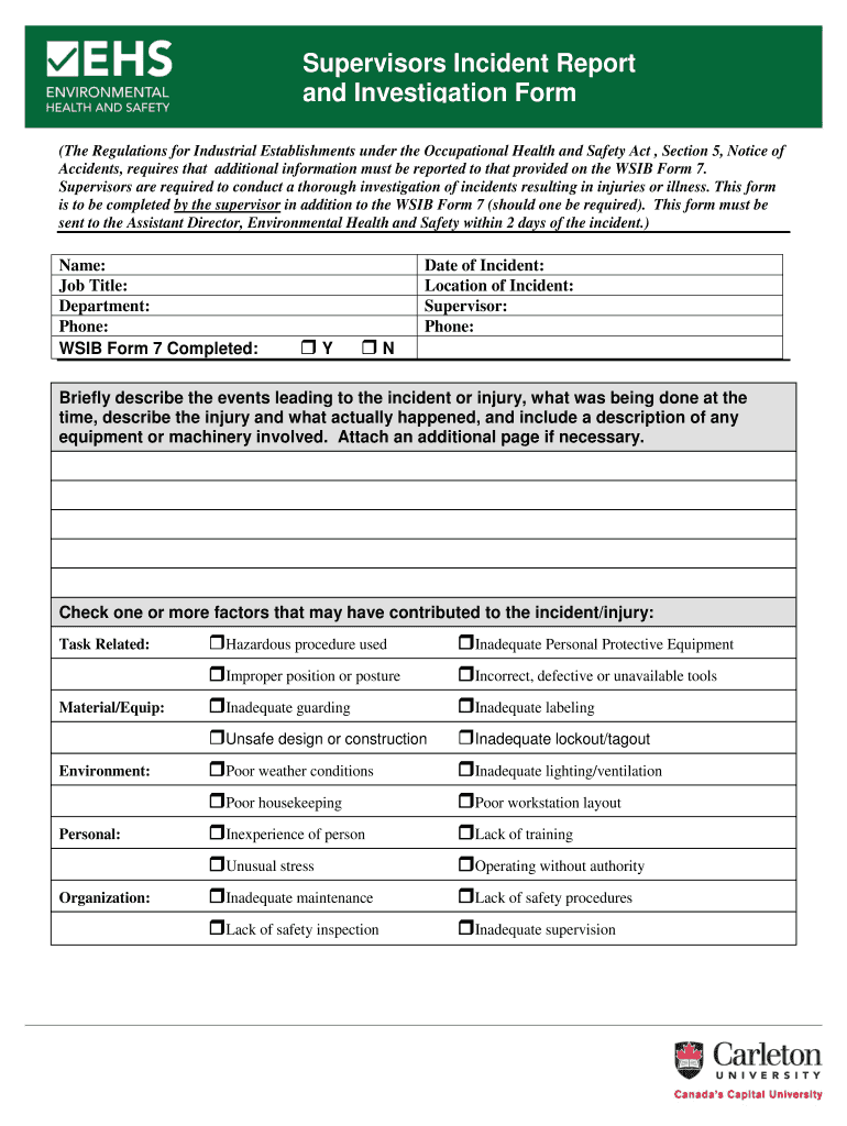 Supervisors: It is the responsibility of supervisors to fill out this form whenever an employee sustains an injury or is involved in an incident while on the job. By completing this form, supervisors ensure that proper documentation of the event is completed, which is crucial for both the employee's well-being and any potential legal matters that may arise.