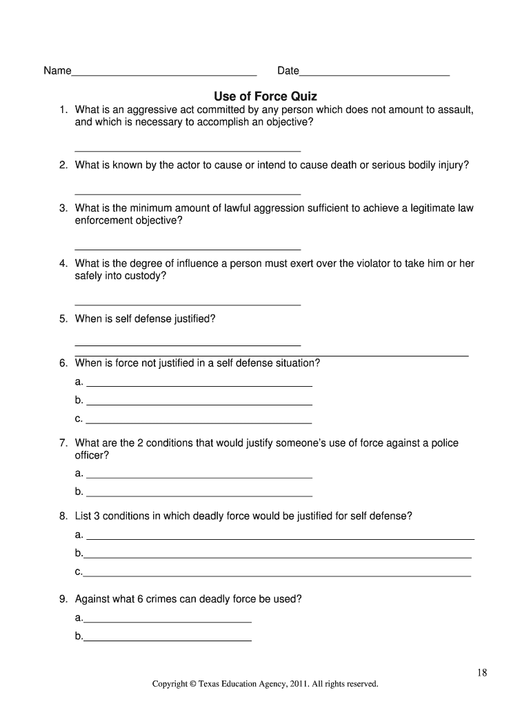 Get the free Use of Force Quiz - Lake Dallas Independent School District - ldhs ldisd