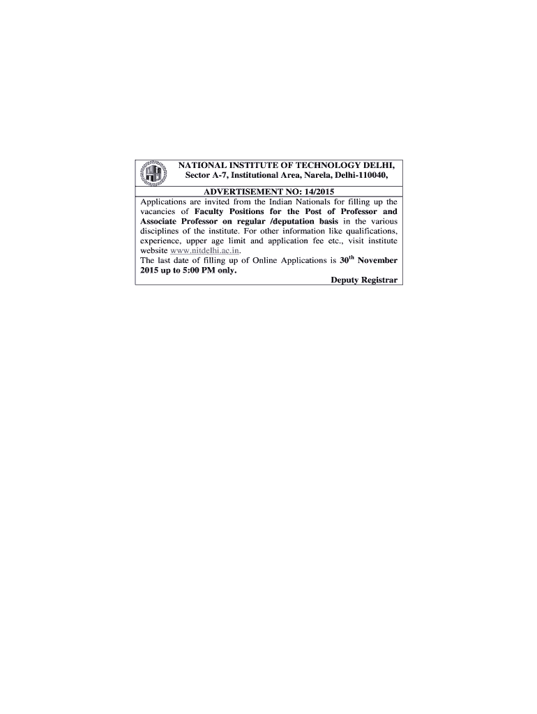Get the free NATIONAL INSTITUTE OF TECHNOLOGY DELHI, - nitdelhi ac