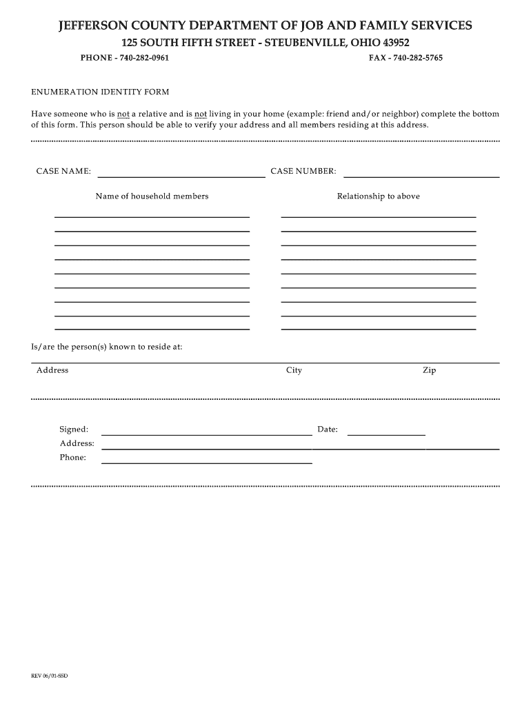 The Enumeration Identity Form is crucial for individuals needing residency verification, offering multiple benefits that streamline the services provided by Job and Family Services. This form facilitates the verification of residency and the identification of household members, both of which are vital for service eligibility. Timely and accurate submission of the form is essential, as errors can delay processing and access to necessary resources.