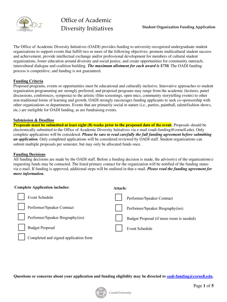 Get the free OADI Organization Funding Applicationdocx - oadi cornell