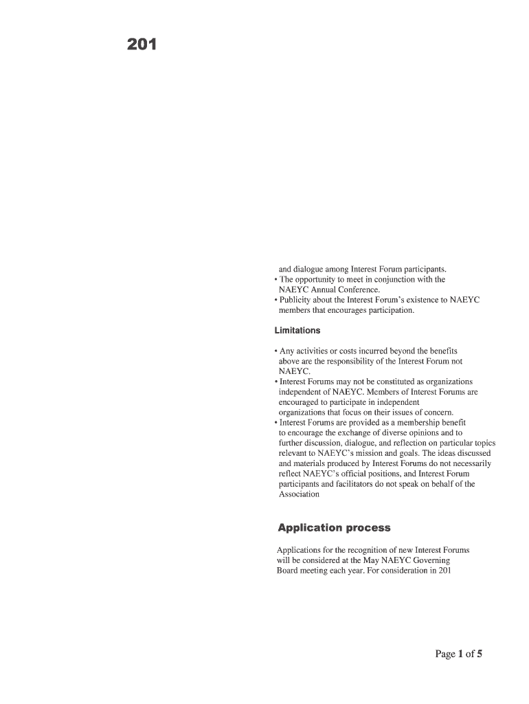 Any individual who wishes to join an interest forum within NAEYC is required to file the interest forum application.