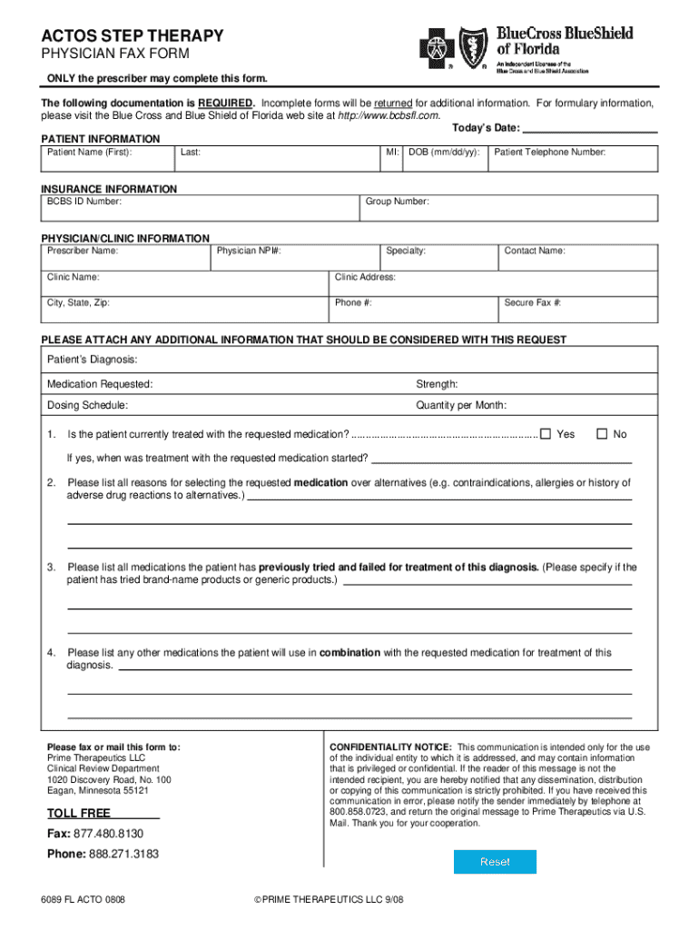 Get the free ACTOS STEP THERAPY PHYSICIAN FAX FORM