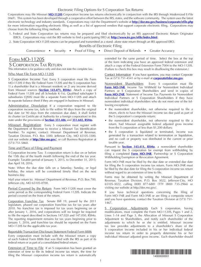 How to fill out form mo-1120s instructions: