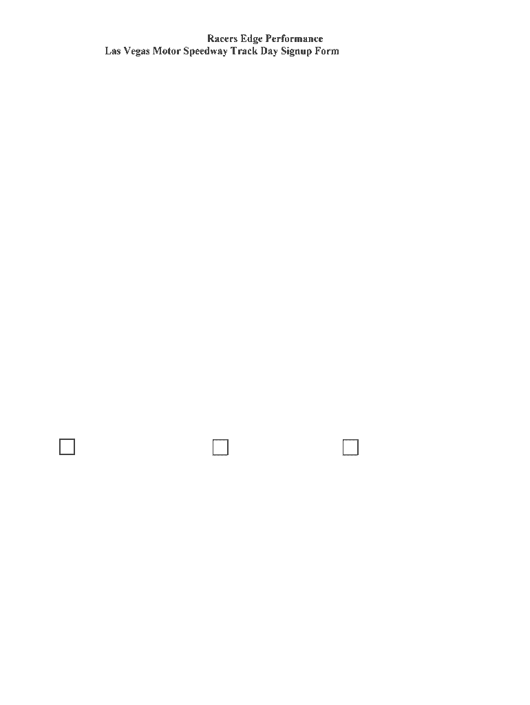Racers Edge Performance Las Vegas Motor Speedway Track Day Signs up Form EVENT PLEASE READ CAREFULLY BEFORE SIGNING I (PRINT NAME LEGIBLY), understand that my involvement in this track day event may