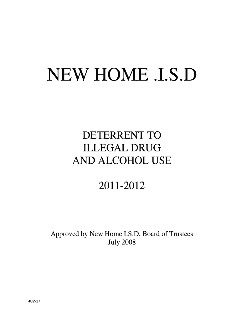 NEW HOME. I.S.D DETERRENT TO ILLEGAL DRUG AND ALCOHOL USE 20112012 Approved by New Home I.S.D. Board of Trustees July 2008 408927 New Home Independent School District Deterrent to the use of Illegal