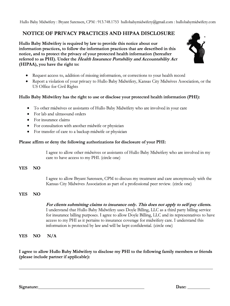 Hello Baby Midwifery : Bryant Hansen, CPM : 913.748.1753 hullobabymidwifery gmail.com : hullobabymidwifery.com NOTICE OF PRIVACY PRACTICES AND HIPAA DISCLOSURE Hello Baby Midwifery is required by