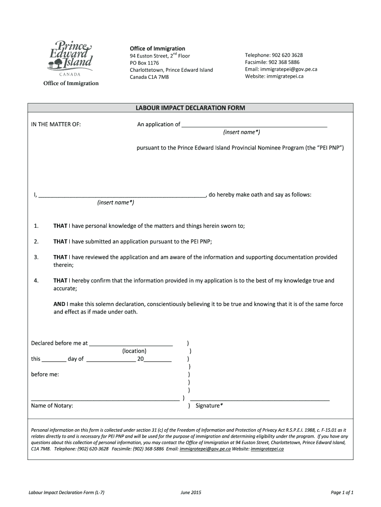 Get the free LABOUR IMPACT DECLARATION FORM - gov pe