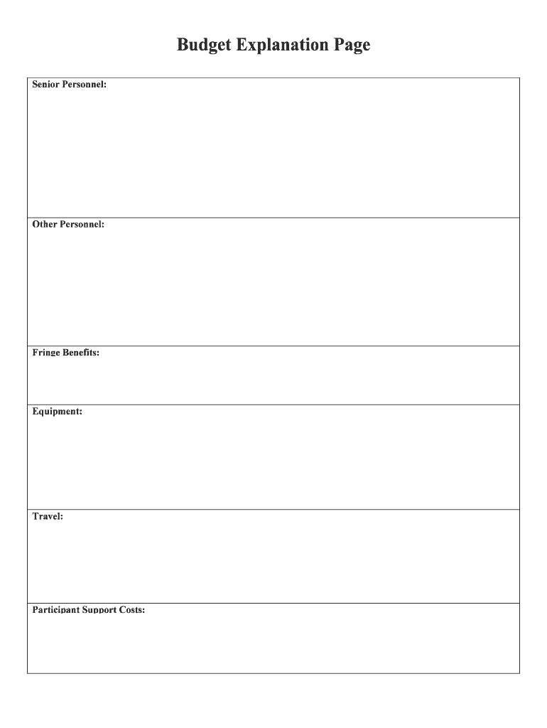 Budget Explanation Page Senior Personnel: Other Personnel: Fringe Benefits: Equipment: Travel: Participant Support Costs: Materials and Supplies: Publication Costs: Consultant Services: Computer Services:
