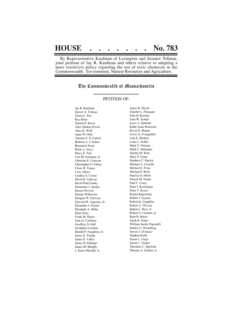 HOUSE. . . . . . . No. 783By Representative Kaufman of Lexington and Senator Holman,