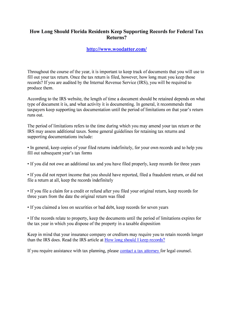 Get the free How Long Should Florida Residents Keep Supporting Records for Federal Tax