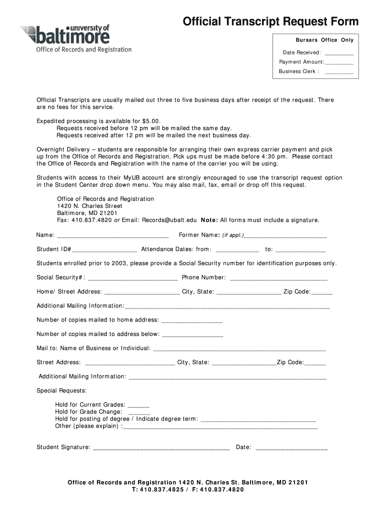 Get the free Official Transcript Request Form - University of - ubalt