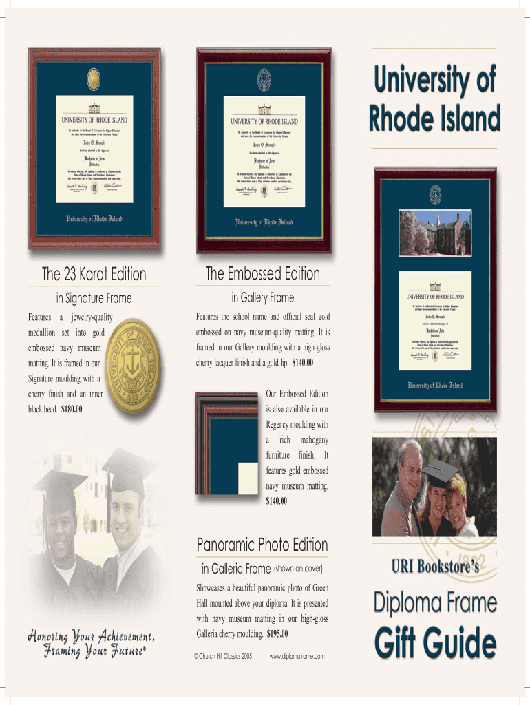 This document provides a list of diploma frame options available for graduation, including various editions and pricing, as well as an order form for customers to fill out.