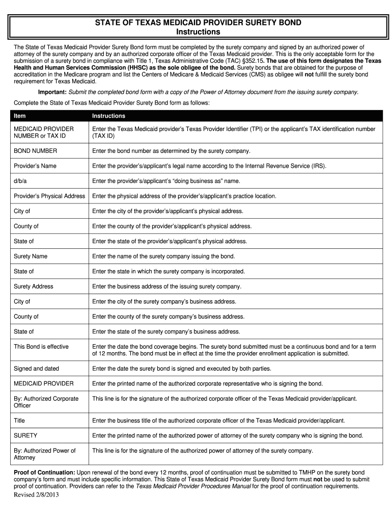 How to fill out texas medicaid surety bond