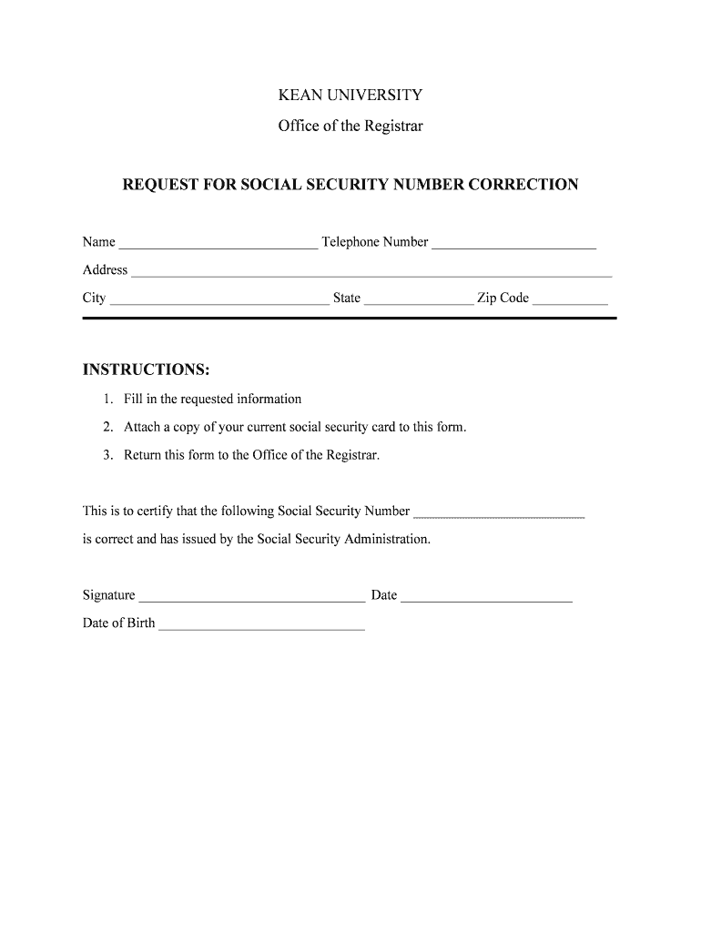 MEAN UNIVERSITY Office of the Registrar REQUEST FOR SOCIAL SECURITY NUMBER CORRECTION Name Telephone Number Address