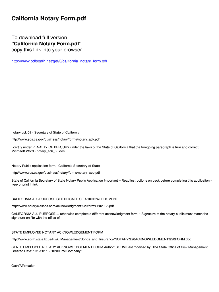 California Notary Form.pdf To download full version California Notary Form.pdf copy this link into your browser: http://www.pdfspath.net/get/3/california notary form.pdf notary ACK 08 Secretary of