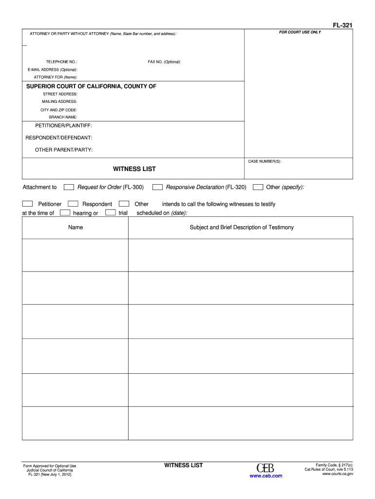 Change Document Font Size Check Spelling Email Form Save Form FL321 FOR COURT USE ONLY ATTORNEY OR PARTY WITHOUT ATTORNEY (Name, State Bar number, and address): + TELEPHONE NO.: FAX NO. (Optional):