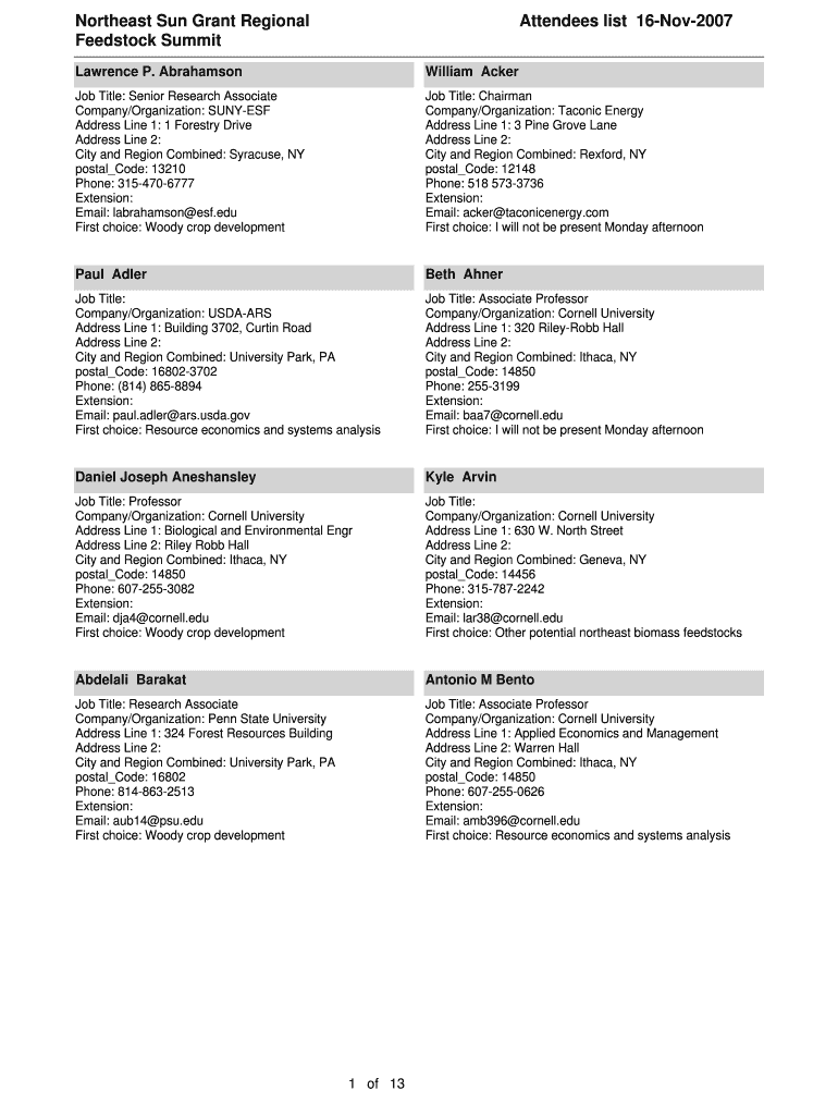 Get the free Northeast Sun Grant Regional Attendees list 16-Nov-2007 - nesungrant cornell