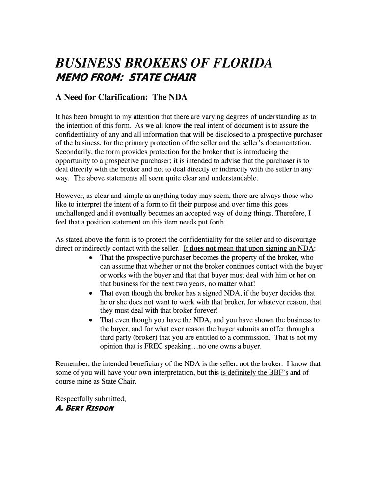 Get the free business brokers of florida memo from: state chair