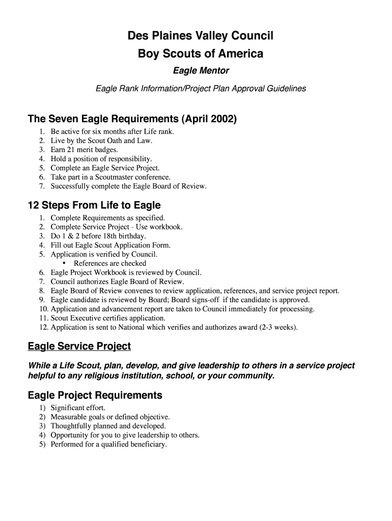 Eagle Rank Information/Project Plan Approval Guidelines Seven Eagle Requirements (April 2002)