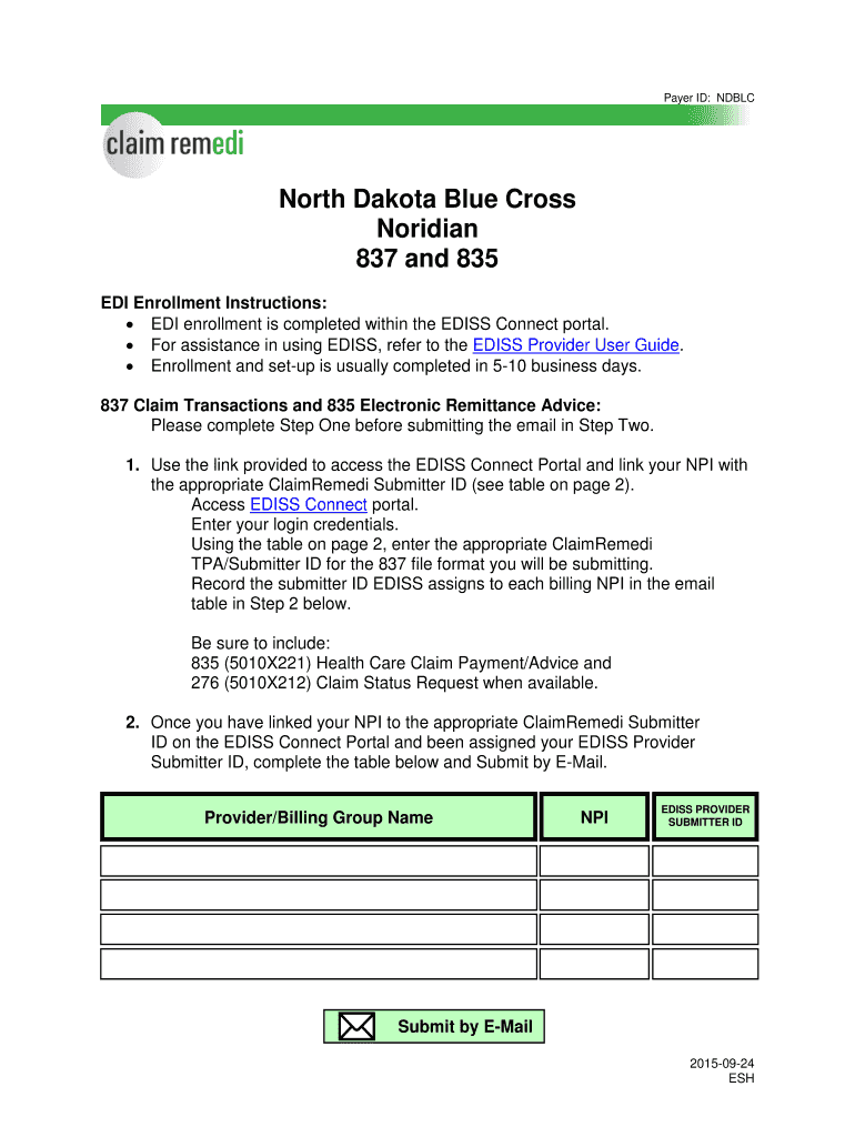 Get the free North Dakota Blue Cross Noridian 837 and 835 - ClaimRemedi