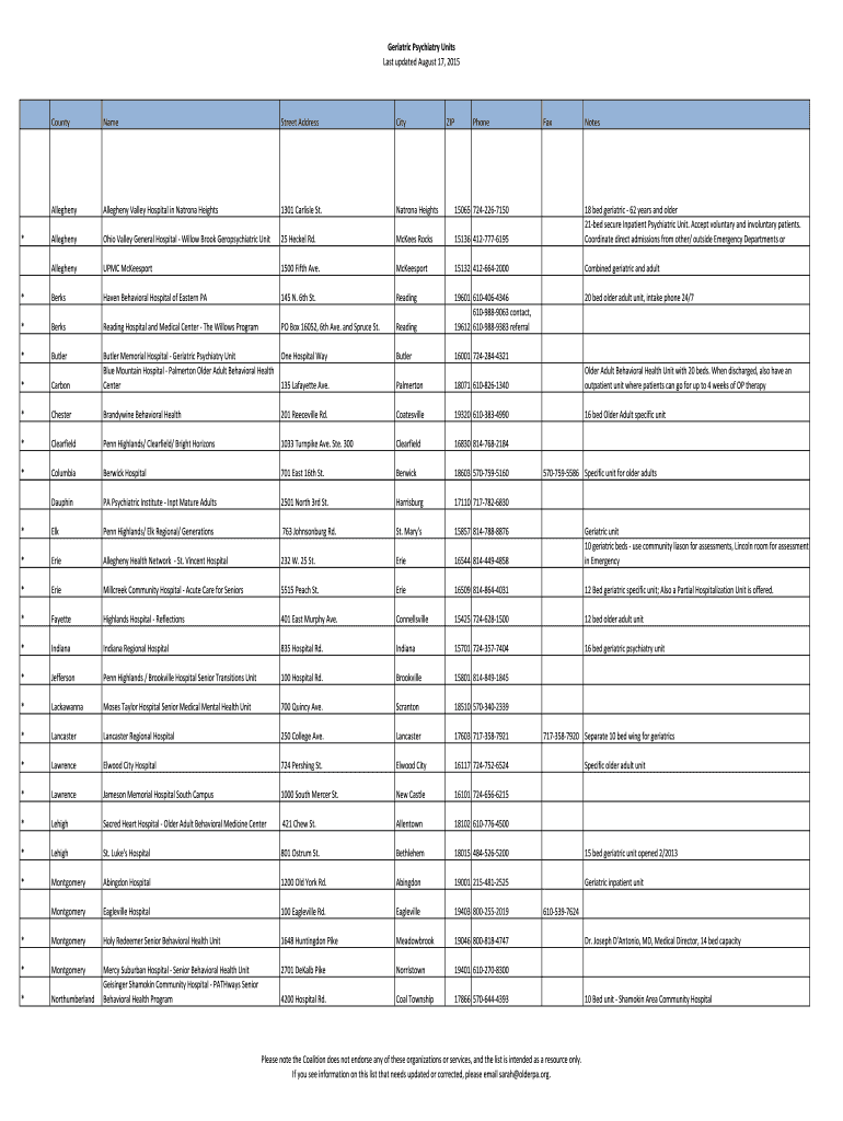 Get the free Geriatric Psychiatry Units - olderpa