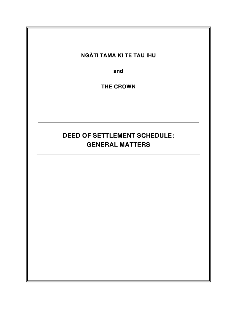 NG TI TAMPA I TE TAU ICU and THE CROWN DEED OF SETTLEMENT SCHEDULE: GENERAL MATTERS NG TI TAMPA I TE TAU ICU DEED OF SETTLEMENT: GENERAL MATTERS SCHEDULE TABLE OF CONTENTS 1 EFFECT OF SETTLEMENT 2