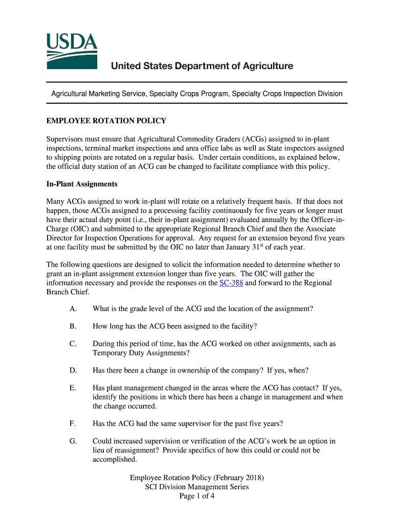 Agricultural Marketing Service, Specialty Crops Program, Specialty Crops Inspection DivisionEMPLOYEE ROTATION POLICY