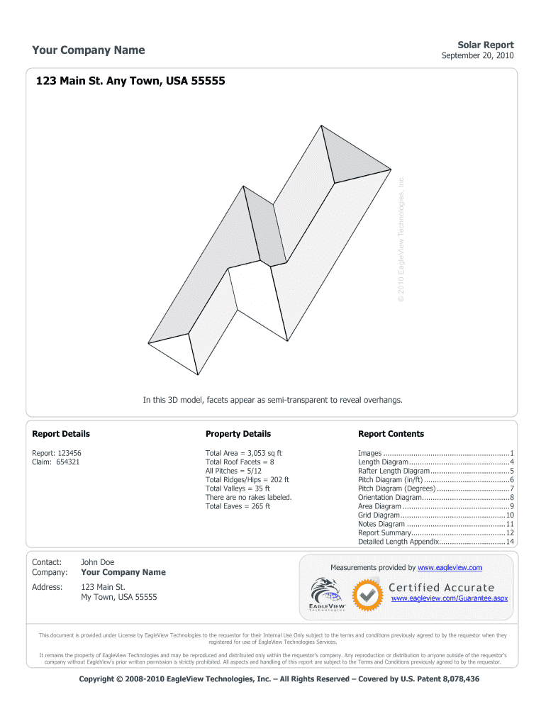 Solar Report Your Company Name September 20, 2010 123 Main St. Any Town, USA 55555 In this 3D model, facets appear as semitransparent to reveal overhangs. Report Details Property Details Report Contents