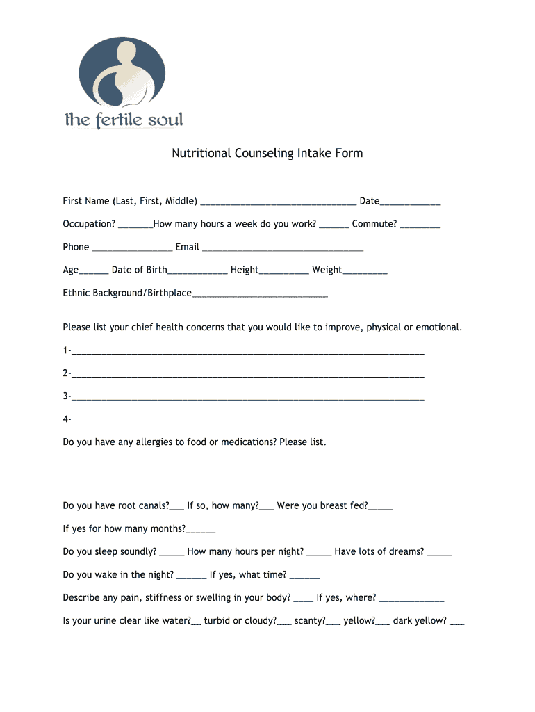 Get the free Nutritional Counseling Intake Form - The Fertile Soul