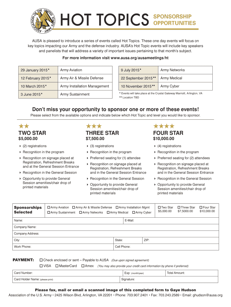 Get the free BHOT TOPICSb SPONSORSHIP - Association of the United States Army - ausa