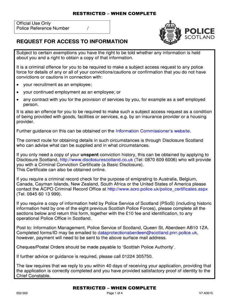 Get the free BRequestb for bAccessb to Information bFormb - Police Scotland