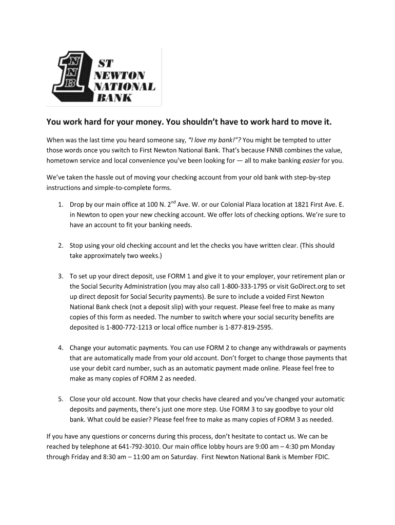 Get the free Bank Switch Kit - First Newton National Bank