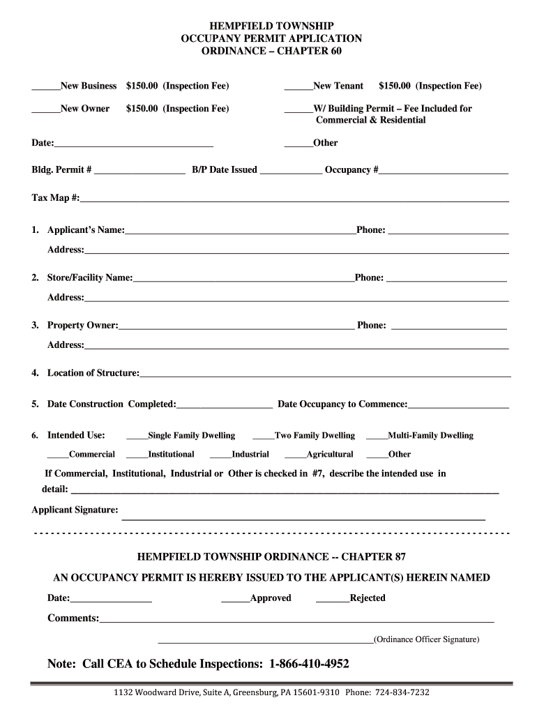 Get the free Occupancy Permit bApplicationb Ordinance - Hempfield Township
