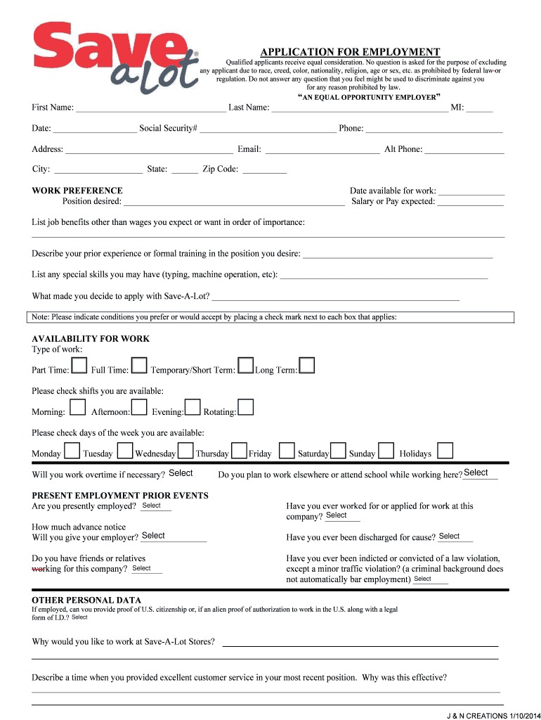 Save A Lot Application is not the form you're looking for?Search for another form here.