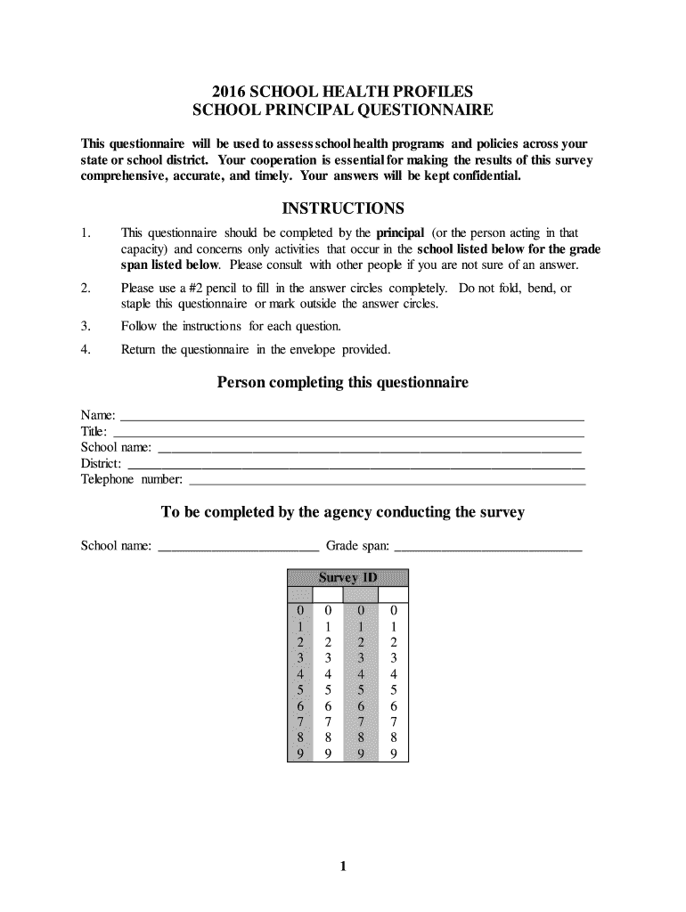 Get the free 2016 School Health Profiles School Principal Questionnaire. 2016 School Health Profi...