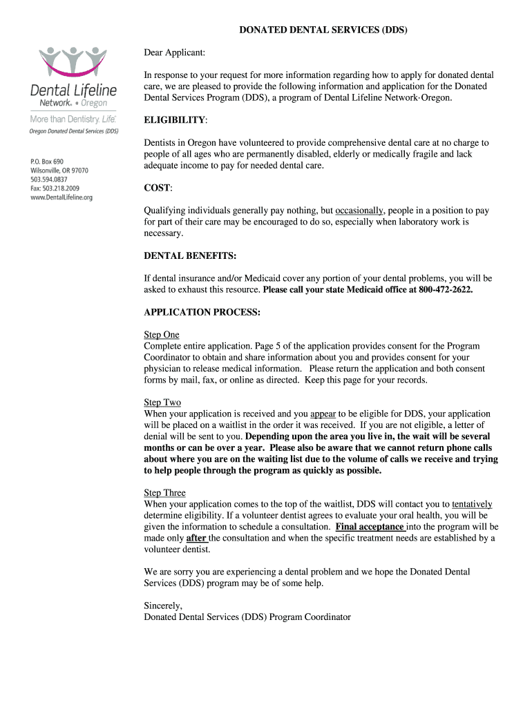 Get the free Dental Services Program (DDS), a program of Dental Lifeline NetworkOregon