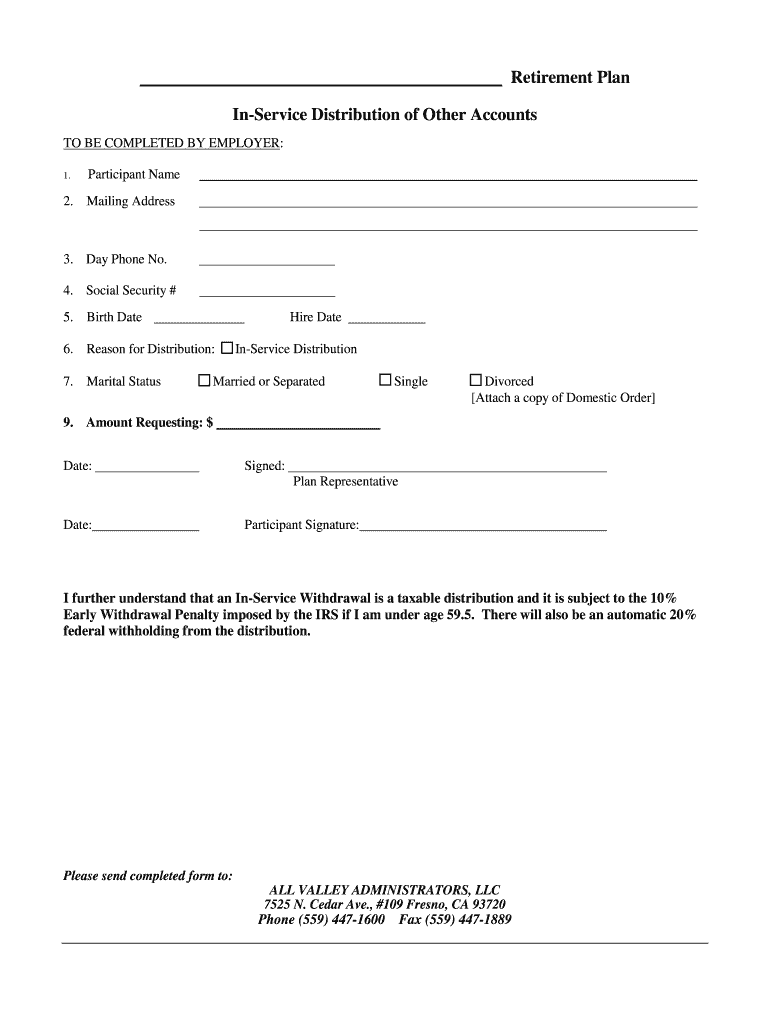 Please note that it is important to consult with a financial advisor or retirement plan administrator to understand the specific rules and regulations regarding in-service distributions before completing the form.