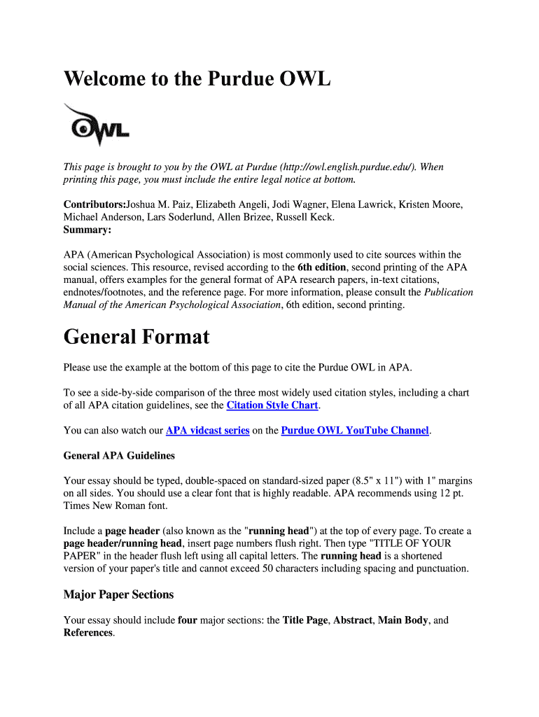 Welcome to the Purdue OWL This page is brought to you by the OWL at Purdue (http://owl.english.purdue.edu/). When printing this page, you must include the entire legal notice at bottom. Contributors:Joshua