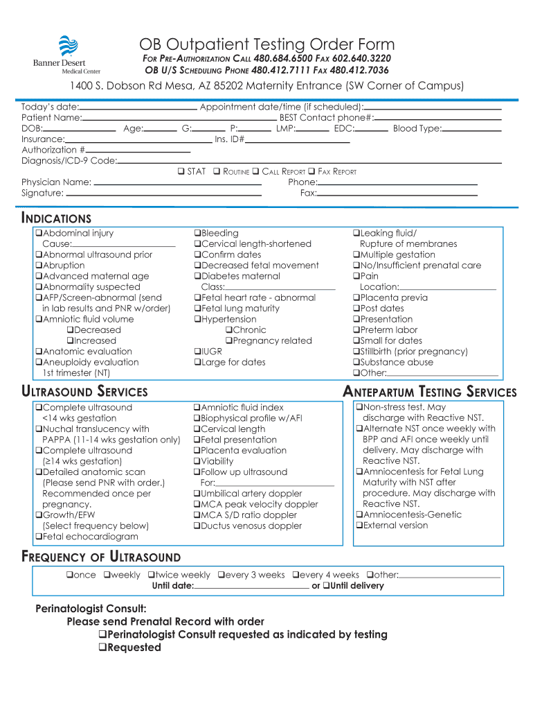 Get the free OB Outpatient Testing Order Form - Banner Health