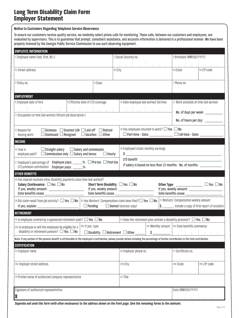 Long Term Disability Notice of Claim Package EMPLOYER NOTICE OF CLAIM INSTRUCTIONS At approximately 45 days before end of benefit waiting period: A. Complete the Employers Statement in full. Include: