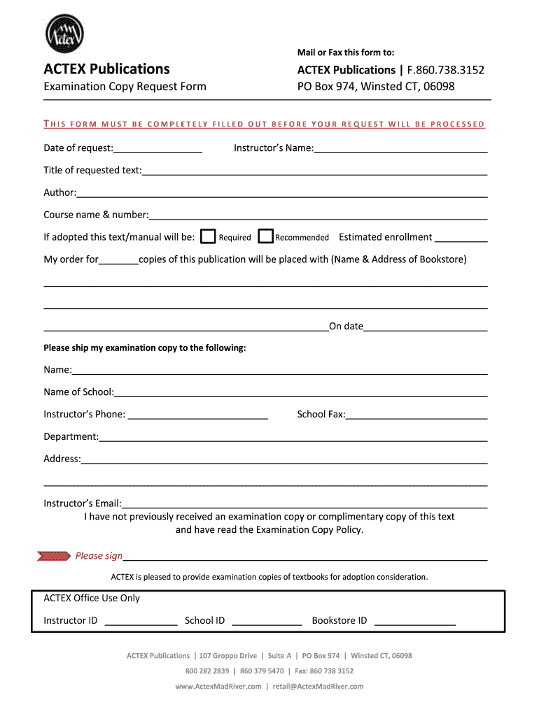 Begin filling out the actex publications form step by step, following the provided instructions. Make sure to review each section thoroughly before proceeding to the next one.