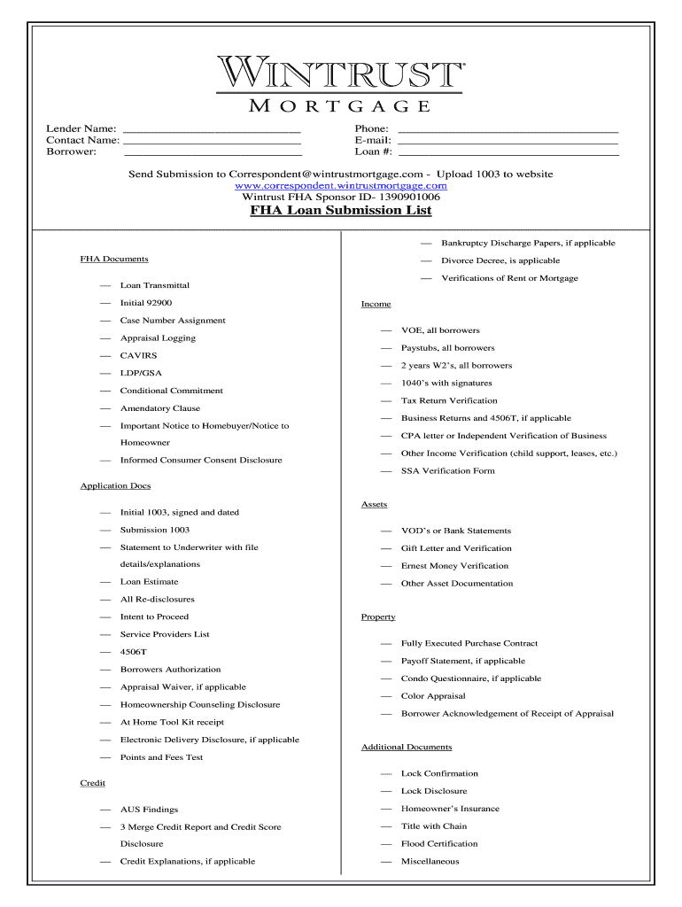 Get the free FHA Loan Submission List - Wintrust Mortgage