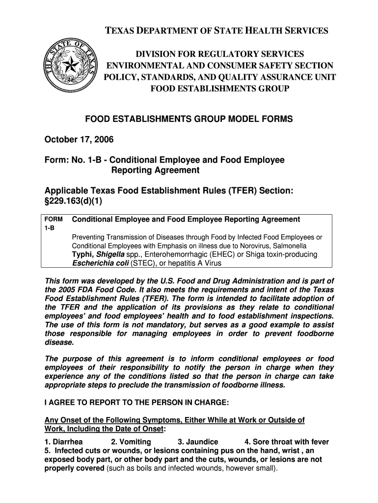 TEXAS DEPARTMENT OF STATE HEALTH SERVICES DIVISION FOR REGULATORY SERVICES ENVIRONMENTAL AND CONSUMER SAFETY SECTION POLICY, STANDARDS, AND QUALITY ASSURANCE UNIT FOOD ESTABLISHMENTS GROUP FOOD ESTABLISHMENTS