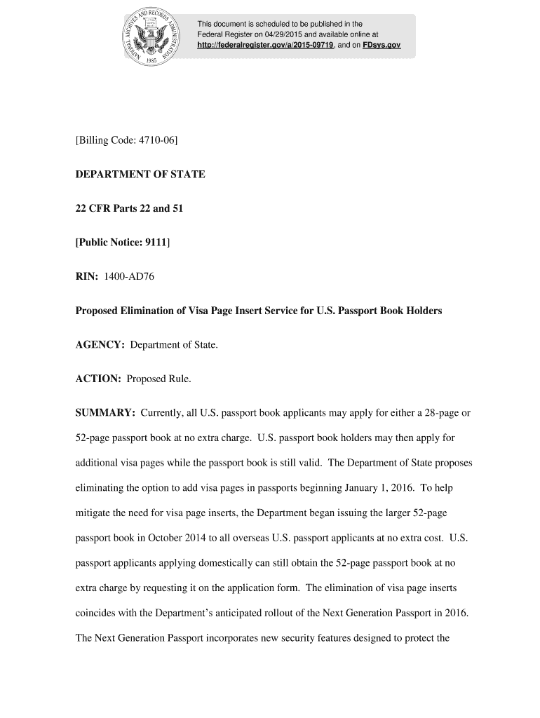 Get the free Billing Code 4710-06 DEPARTMENT OF STATE RIN Proposed