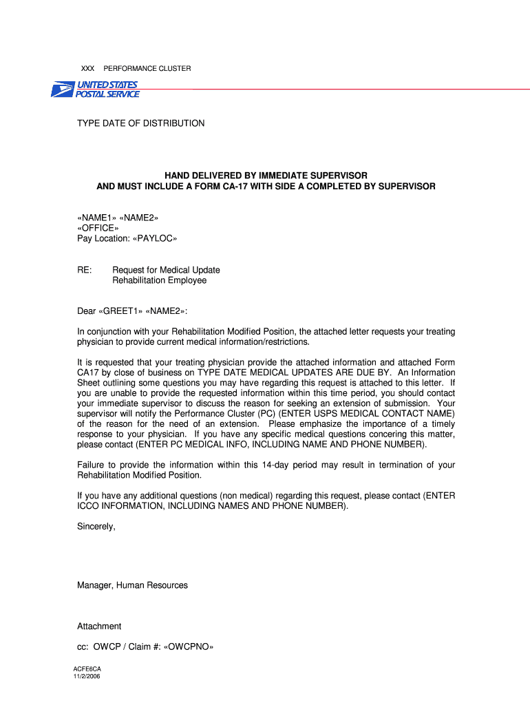 XXX PERFORMANCE CLUSTER TYPE DATE OF DISTRIBUTION HAND DELIVERED BY IMMEDIATE SUPERVISOR AND MUST INCLUDE A FORM CA17 WITH SIDE A COMPLETED BY SUPERVISOR NAME1 NAME2 OFFICE Pay Location: PAY LOC RE: