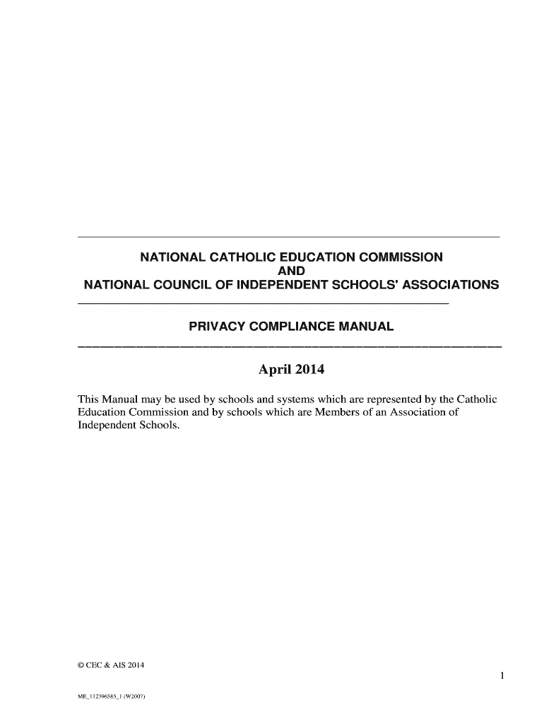 NATIONAL CATHOLIC EDUCATION COMMISSION AND NATIONAL COUNCIL OF INDEPENDENT SCHOOLS' ASSOCIATIONS PRIVACY COMPLIANCE MANUAL April 2014 This Manual may be used by schools and systems which are represented