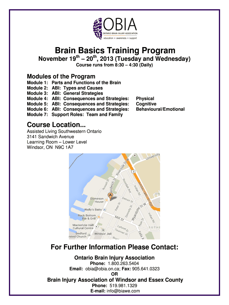 Brain Basics Training Program November 19th 20th, 2013 (Tuesday and Wednesday) Course runs from 8:30 4:30 (Daily) Modules of the Program Module 1: Module 2: Module 3: Module 4: Module 5: Module 6: