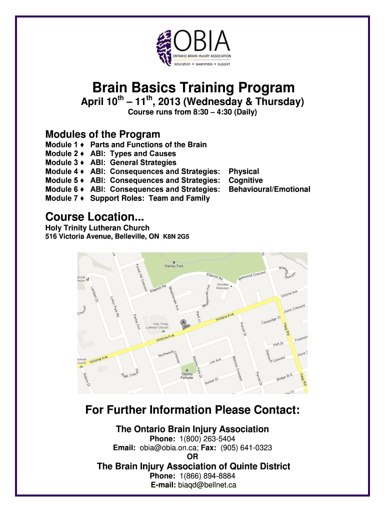 Brain Basics Training Program April 10th 11th, 2013 (Wednesday & Thursday) Course runs from 8:30 4:30 (Daily) Modules of the Program Module 1 Module 2 Module 3 Module 4 Module 5 Module 6 Module 7